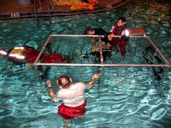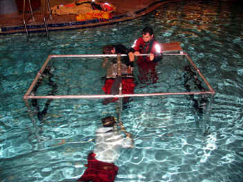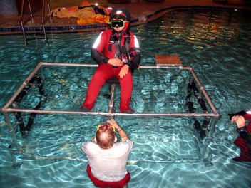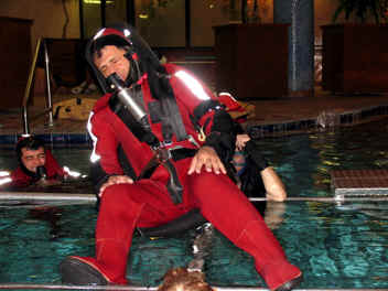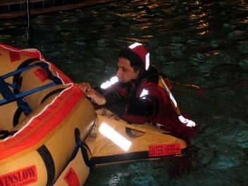 We signed up for a Underwater Egress and HEED training in addition to Emergency Water Landing training. This class was specifically designed to show us how to ditch an aircraft on cold water off of the North Atlantic Ocean in case we lose our engine and how to evacuate and survive until we are rescued.